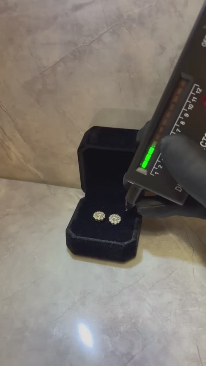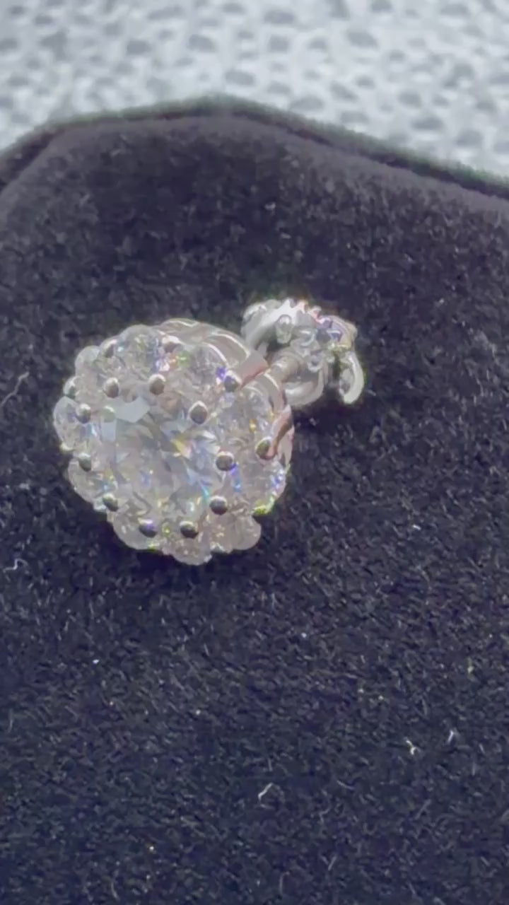 Crafted for timeless elegance, these halo stud earrings showcase VVS1 clarity moissanite stones, renowned for their exceptional brilliance and fire. Each stone is precision cut to maximize light reflection, delivering a classic yet eye-catching sparkle that transitions effortlessly from everyday wear to special occasions.